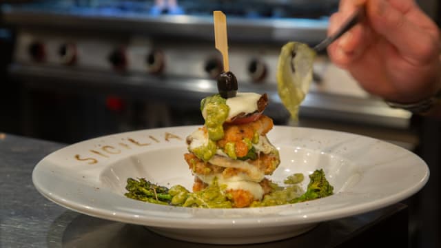 Een lief wit terras nodigt je uit in deze vernieuwde trattoria, lunchroom en restaurant. De laars van Italië siert de natuurstenen muur en dan weet je dat je hier heerlijk Italiaans gaat eten of meenemen. Kleine hapjes en handzame porties uit de Siciliaanse keuken die op bestelling ook af te halen z...