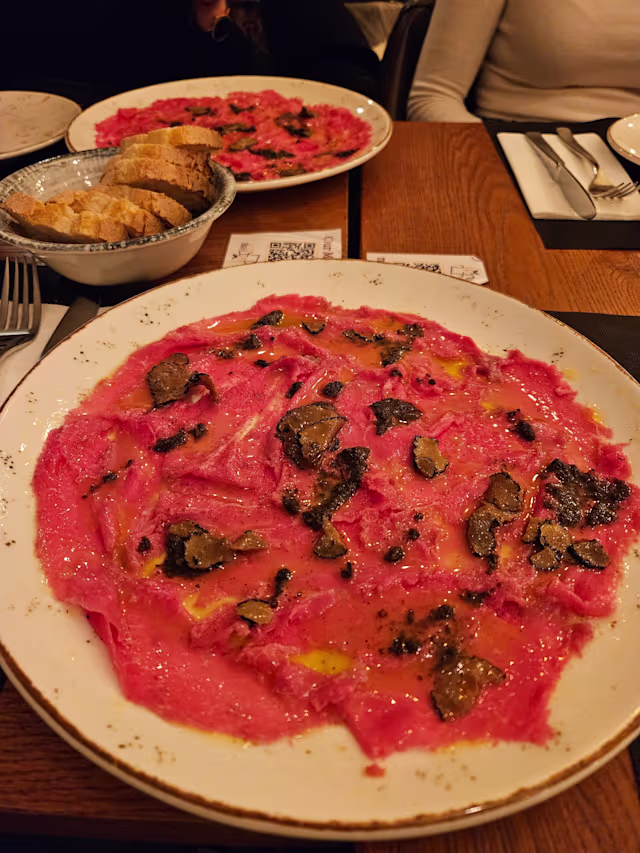 This restaurant truly made our evening in Rome unforgettable. The food was so delicious that words can hardly describe it. We ordered a cheese and meat platter, carbonara, and amatriciana pasta - everything was hearty and incredibly tasty. The Aperol Spritz was light and refreshing, and the Coke with a slice of lemon was a lovely touch. Everything was presented so beautifully that not only our stomachs and taste buds, but also our eyes were delighted. The way we were welcomed, the polite and attentive service, the thoughtful answers to all our questions, we genuinely felt at home there. I would absolutely recommend this place, it’s a solid 10/10! And on top of that, we were lucky enough to enjoy a 50% discount from this app, at such beautiful restaurant. Highly recommend 100%!