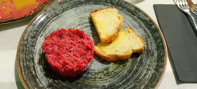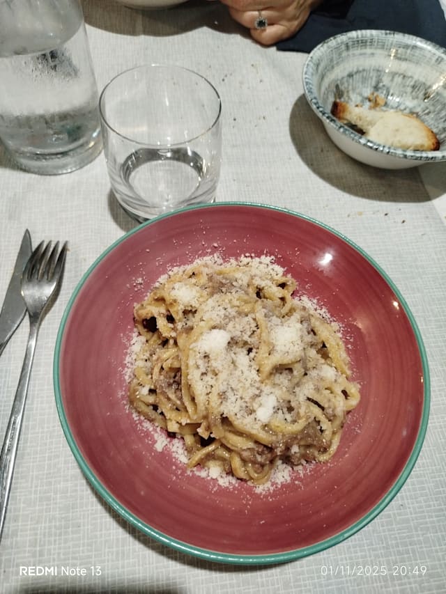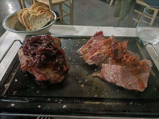 5/10Kind-of drab atmosphere with an annoying large tv screen. Menu with very limited options other than steaks and charcuterie boards. Probably fine if you are into that type of place, but it definitely was sub par compared to the thousands of amazing restaurants in Rome.