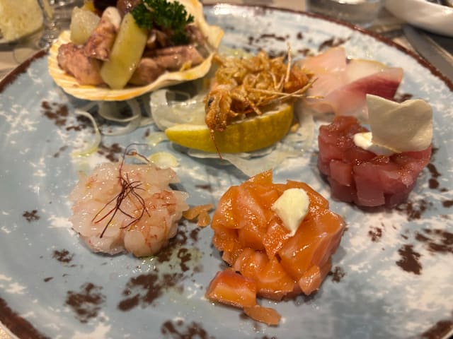 8.5/10A very unexpectedly impressive and beautiful place - loads of history on show! Food was perfectly pleasant - typical local cuisine... Polpo Pasta was tasty and an unusual option. The steak wasnt the best but as we all know is prone to variability.... My fried mixed seafood was light and tasty. Wine was good. Overall I recommend for a fair value, typical Italian meal in the area.