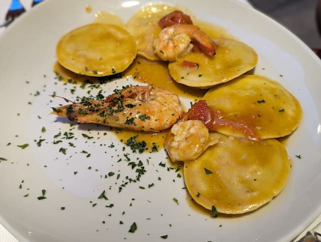 9/10Ravioli with shrimp and scallops was delicious. Fillet with four cheeses was ver good. I was unaware that Calabrian beef was we-reputed. We ate outside, which was ver pleasant. Service was good but a little slow.