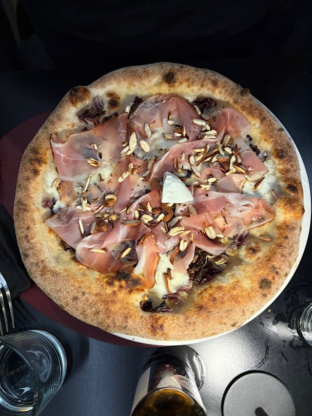 8.5/10We went for lunch. We were alone in the very large space so we had a lot of attention. We shared a pizza and a caprese salad. Both were good. Generous burrata on the pizza. The ambiance is fine - sits between formal and casual with salt and pepper in little paper packages and paper napkins, but the servers were formally dressed and very attentive.