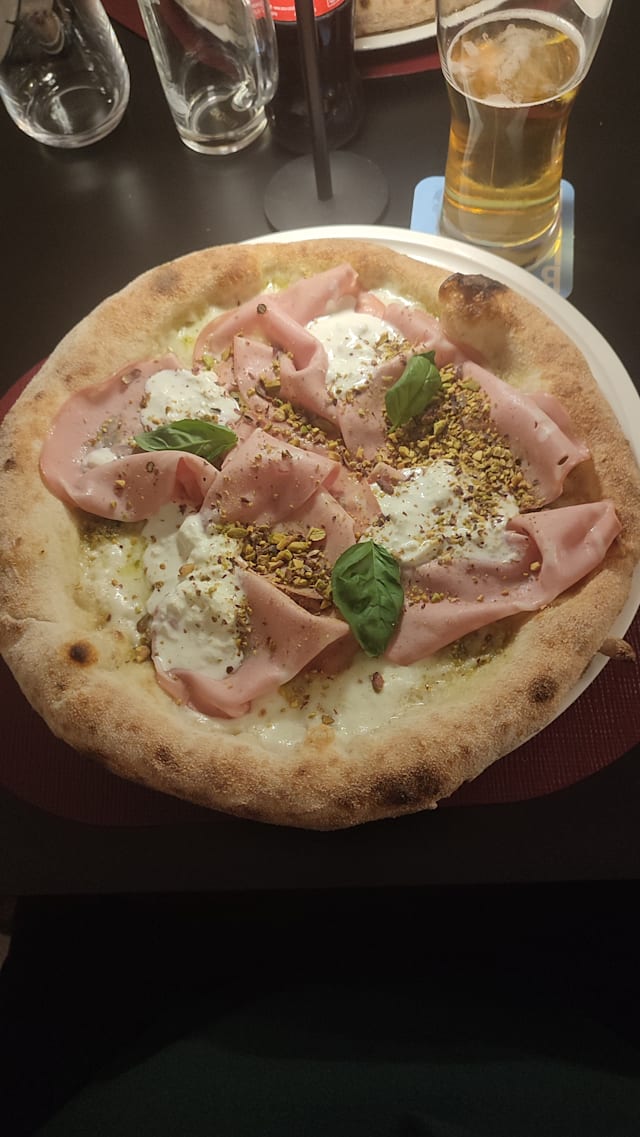 Pesto di pistacchio, fiordilatte campana in acqua DOP, pomodoro datterino cotto al forno, prosciutto crudo riserva 24 mesi, burrata campana, basilico, olio EVO