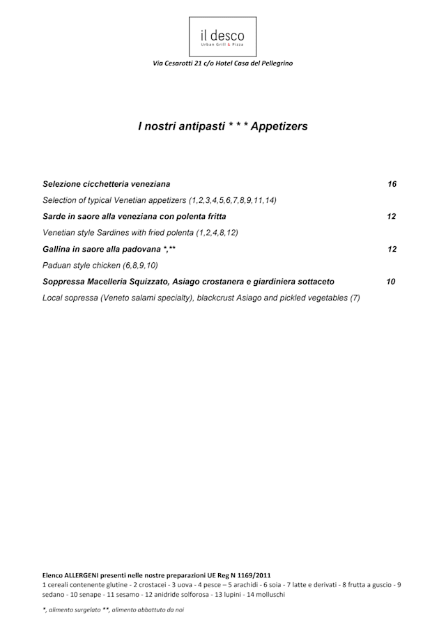EuropeanVenetianItalianGluten freeVegan dishesVegetarian dishesCellarDog-FriendlyWheelchair AccessibleWifi
