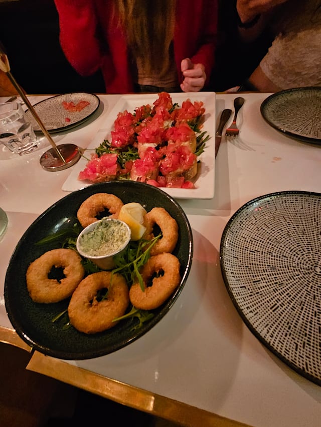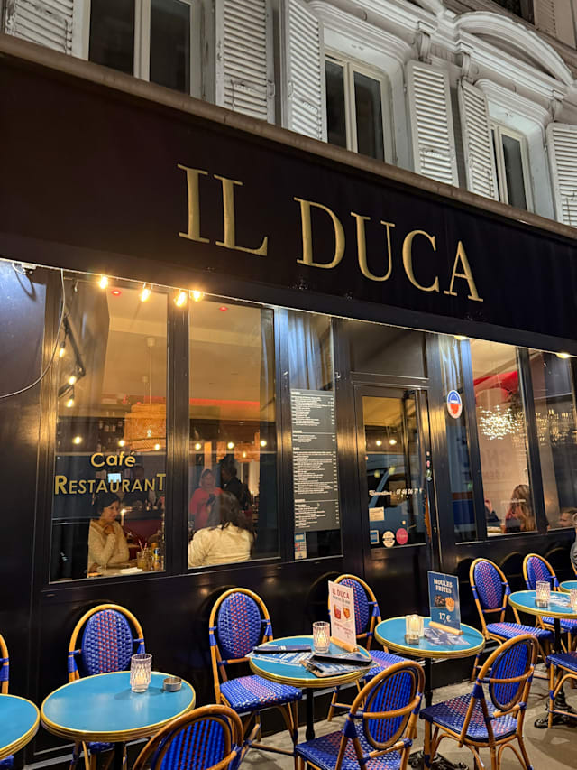 10/10After a rainy evening visit to the Basilica de Sacre Coeur my two teenager daughters and I visited Il Duca, which I had booked through The Fork. As three females travelling alone I was keen to find somewhere close to the Abesses metro station so that we'd have a straight forward trip back to our hotel. Il Duca had good reviews and my girls both love Italian food so it seemed a good option. Il Duca is a gorgeous little restaurant with welcoming and cozy ambiance, the staff forgave my terrible attempts at French and gave us an English menu. We shared calamari and bruschetta for our starter. I'm not exaggerating when I say it was the best calamari I have ever tasted - cooked to perfection with a light batter. The bruschetta was also delicious - we went for the large size, which was very generous - we could have managed with the small I'm sure! However we ate it all as the tomatoes were just divine. For main course I had sea bass and the girls both had lasagne - all top notch.