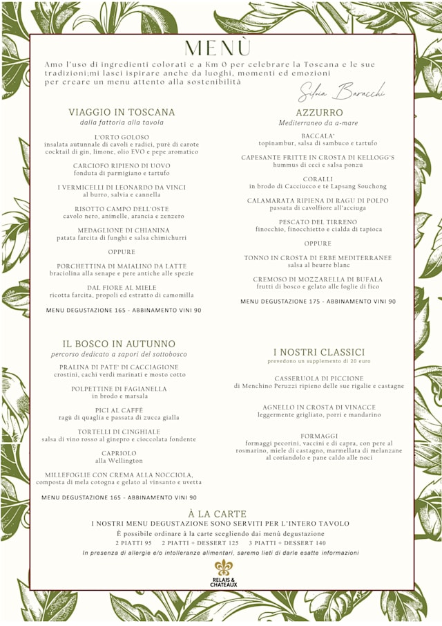 8/10While our meal was very good ,the waiter and sommelier were very efficacious .Specifically we wanted a wine pairing and we’re told it is for the whole table only .Considering that two of our party of four wanted vegetarian and the other two had the seasonal Tuscan ,why could this not be accommodated .What if we were separated two and two ? It made no sense . He was inflexible. Also from my perspective some of the dishes were over salted. We have stayed there twice and had exceptional experience.This was somewhat less friendly than previous visits.