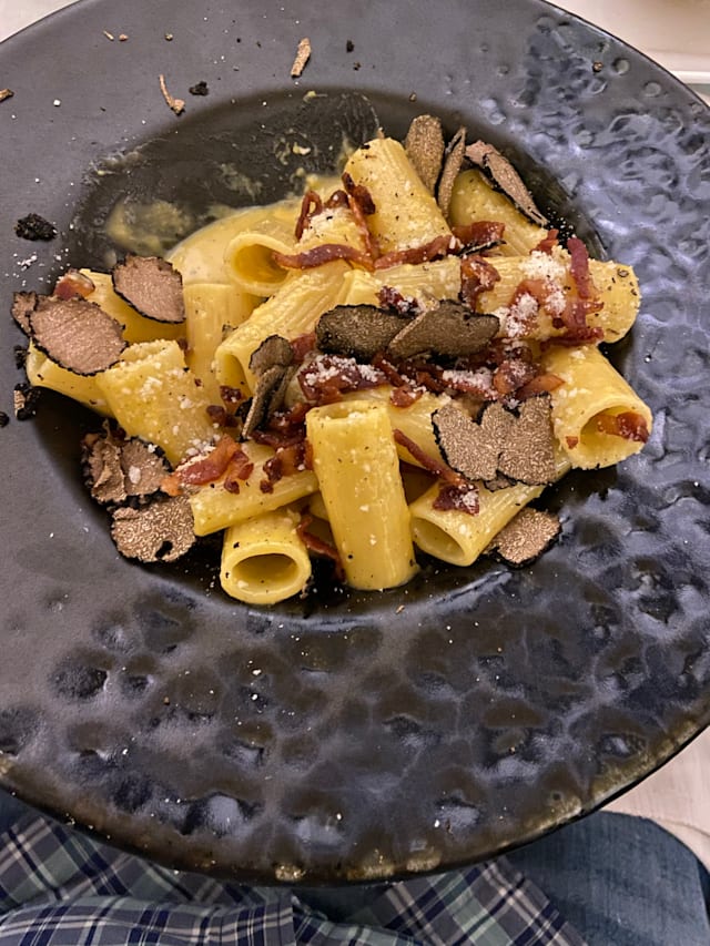 10/10We booked our reservation through The Fork app, which made it easy to walk in (especially with a food allergy). To begin, we were served bread and bruschetta, including a gluten free option that was equally delicious. We then enjoyed the homemade carpaccio (a house special), sea bass filet, steak with seasonal black truffles, and finished the evening with tiramisu (that was gluten free to accommodate my food allergy). The dining room was filled with people and the staff kept up the pace and attention. The wine recommendations were on point.