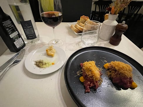 10/10We booked our reservation through The Fork app, which made it easy to walk in (especially with a food allergy). To begin, we were served bread and bruschetta, including a gluten free option that was equally delicious. We then enjoyed the homemade carpaccio (a house special), sea bass filet, steak with seasonal black truffles, and finished the evening with tiramisu (that was gluten free to accommodate my food allergy). The dining room was filled with people and the staff kept up the pace and attention. The wine recommendations were on point.