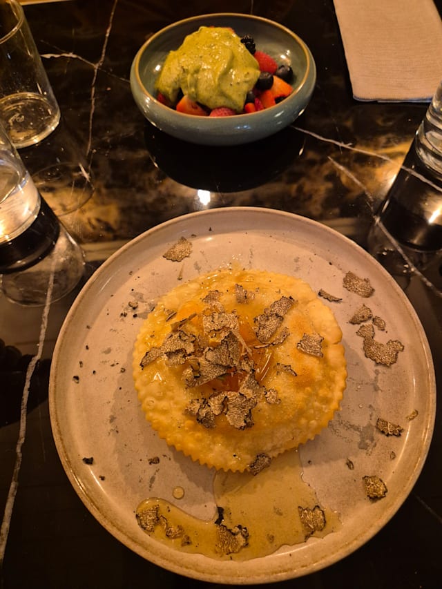 6.5/10Nice and cosy restaurant But the switch from starter to main course was too fast The starter I had had truffle and you could not taste it . But it was good The main course ravioli was ok