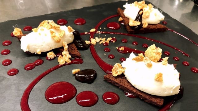 Ricotta, canditi e salsa inglese alla fava di tonka