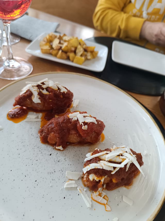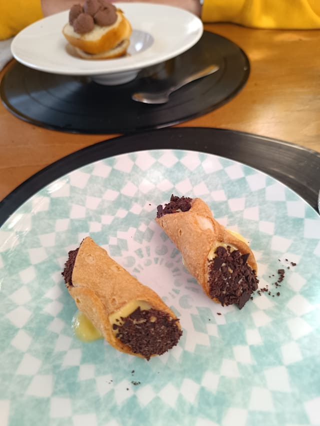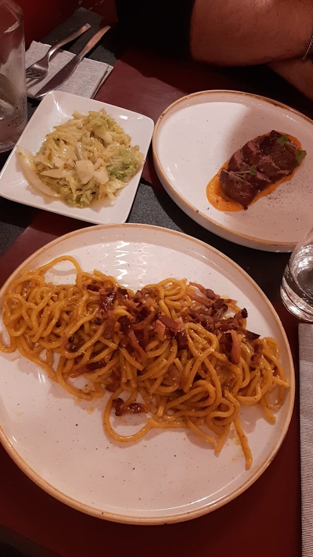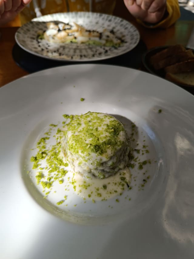 7.5/10Bit narrow menu options but you can't expect much more for a rather small place. The food was good and somewhat artistic. Original. But also the meals felt a bit too scarce, expecially compared to the price. At dinner we got welcomed by the owner with 2 glasses of prosecco, which was highly appreciated and also a little taste of some ricotta mixed up with some pecorino which was ok. The overall experience was quite nice, but with only 30% off, it still felt a little bit too pricey, due to the meagre courses.