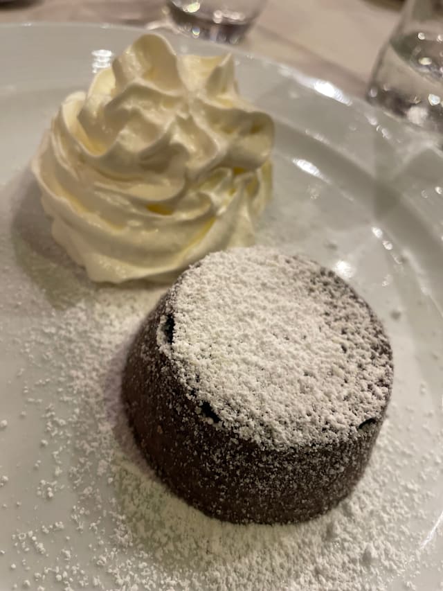7.5/10There were five in our party. Four of us were very happy with our food, especially those of us who ordered the ravioli, which was delicious. One person in our group got his veal (?) Milanese very late, almost after everyone else had finished eating --- perhaps it had to be brought down from Milan? We had made a reservation and were seated in the sun porch area, which was fine, but maybe it would have been nice if we had been given a choice of seating such as inside or outside.