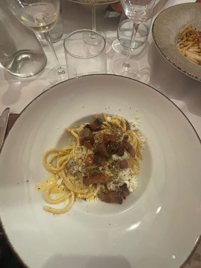 10/10We went for an early meal at 7:30 - they had English menus available. The service was really friendly - the bread was delicious (had focaccia in there). The chips with cacio e pepe were insanely good - thoroughly enjoyed the whole meal and service, would have went back if we had more time, and would definitely recommend!
