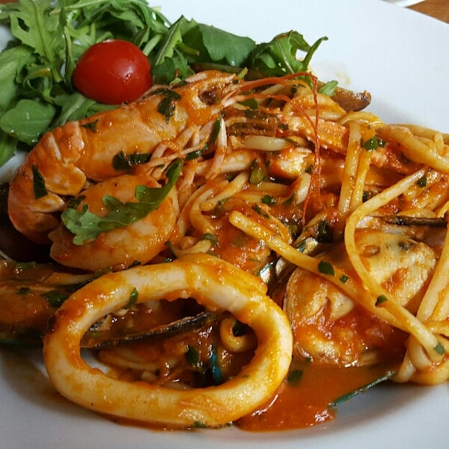 8.5/10The food was great. I ordered the sea food pasta. They weren't shy with the porting of sea food. I was very satisfied. The only negative feedback is that I didn't get a tool to crack open the giant shrimp's claws. I complained and the server said that the chef forgot to crack open them for me, but that was it. He didn't attempt to correct the mistake. The outside seating in the summer isn't the perfect view by a busy street but it's nice to eat there early when the sun is out. I'll definitely be back.