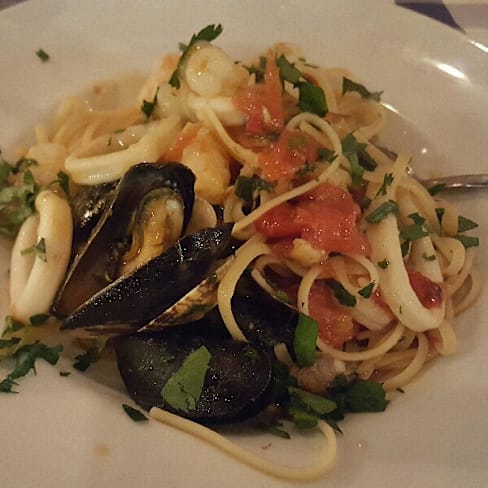 10/10The best Frutti di Mare in Stockholm! Not only it tasted amazing, but also there were a lot of seafood in it: mussels, shrimp, squid, and clams. I was pretty full after that but I had Panna Cotta for dessert anyway (also amazing) My BF had Canneloni which was awesome as well. They have great wine selections. You should ask the server which wine matches your food. They usually know what's best. The service was great: friendly and thoughtful (he noticed that I was freezing and suggested that we would switch tables to one that was away from the door). We had a great time. We will be back soon.