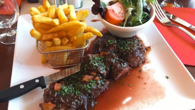 9.5/10We arrived right on time for our reservation but they were running behind, so they offered us a complimentary drink while we waited. Luckily a table became available quickly. We were expecting to be able to order the “formule” but were told it was unavailable due to it being the Christmas season, which we don’t really agree is reasonable but we chose something else to eat. The food was delicious and came out hot, it all exceeded our expectations in taste and quantity. When we finished our meal it was a little difficult as the restaurant was still very busy but overall we are satisfied customers and I will return.