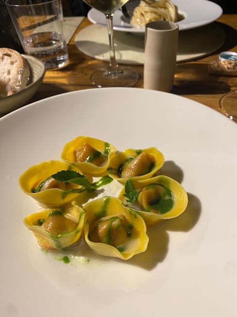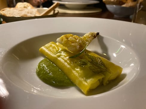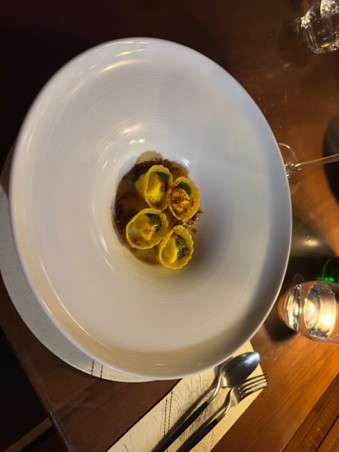 10/10The food is a twist on Italian ingredients and dishes. All were excellent, balanced and memorable. The service was attentive yet never intrusive. Wine recommendations were spot on. We were a table of five tucked in one of the small rooms. We could get a vibe for the place and yet felt like we were in our own private space. It’s a unique space that works magically well.