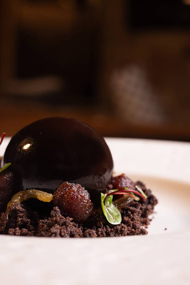 - .Dark Chocolate Mousse, Red Beet and Ginger.