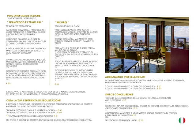 10/10This restaurant had a reputation of being excellent years ago. So, when I saw it listed on The Fork with a reference as a Michelin (list) restaurant. I booked a reservation for lunch. The food, presentation and the service were all excellent. The panoramic view made the experience all the better. The menu was interestingly different with still plenty of typical Umbrian choices if that was desired. The wine list was extensive. Our waiter suggested white (bubbly) and red pairings based on our selections . The selections were perfect and priced modestly. My wife and our Italian guest are both “foodies” and each of them was making complimentary exclamations throughout the meal. The three of us are already planning a return to experience the dinner offerings and will invite others to join us there.