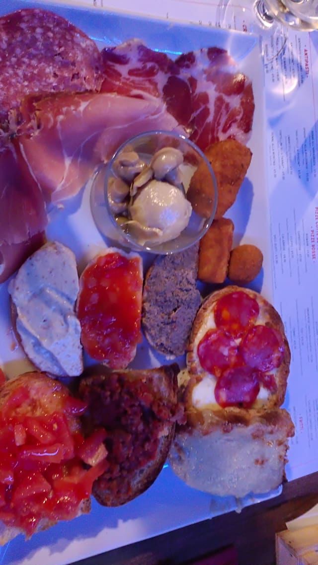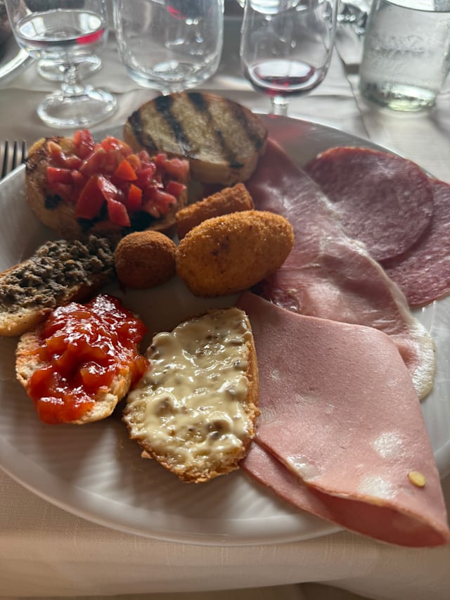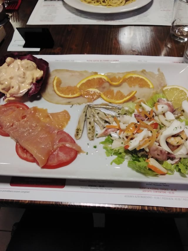 Cocktail di gamberetti – carpaccio di salmone – insalata di mare – acciughe – carpaccio di pesce spada
