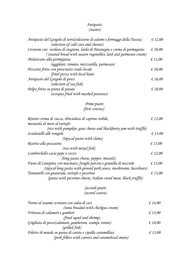 10/10We were a group of 14 "Irish Pilgrims " walking the Via de Frangcigena, our hotel had recommended Il Gargolo for our evening meal. From the moment we went through the front door, we had the most wonderful experience, from the warm welcome we received to the really magnificent food. We would all highly recommend this restaurant.