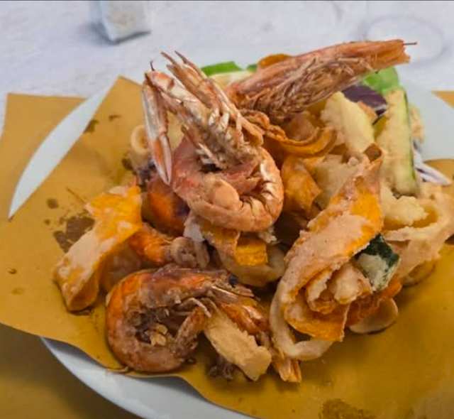9.5/10We ordered 2 fish starters followed by spaghetti seafood and a fizh platter. Situated in piazza Palermo in Genova. Excellent food, excelent service.