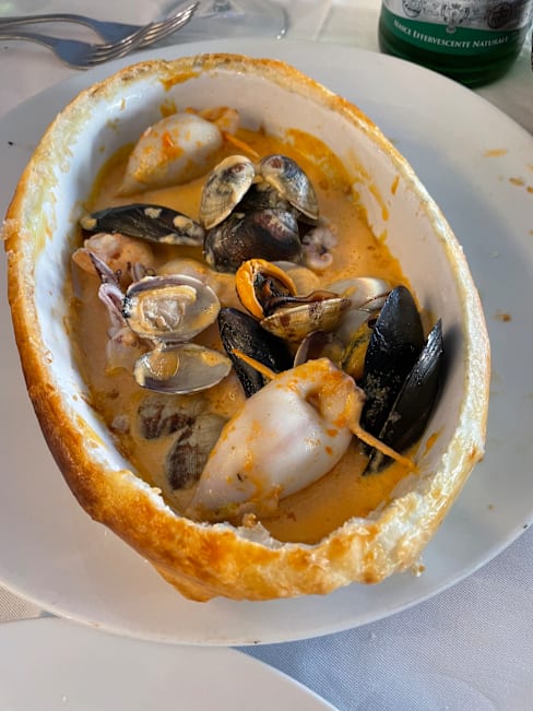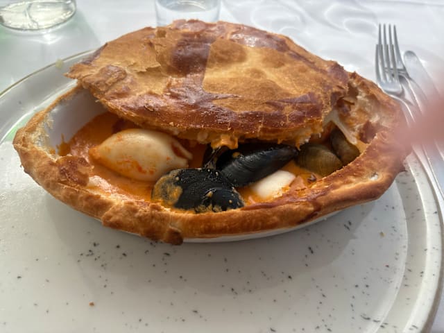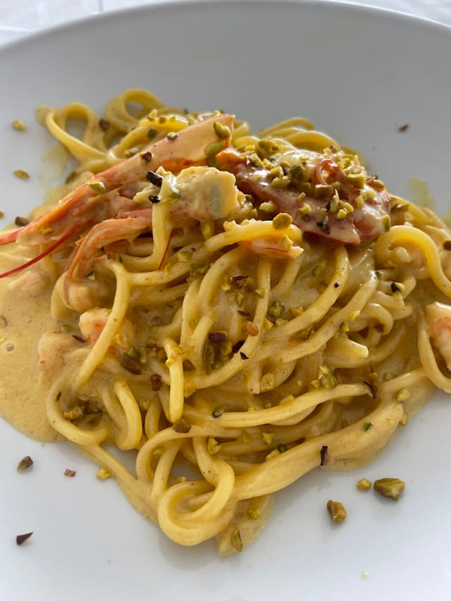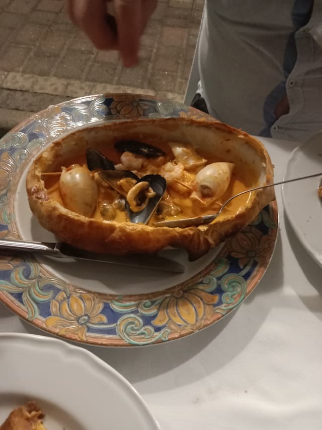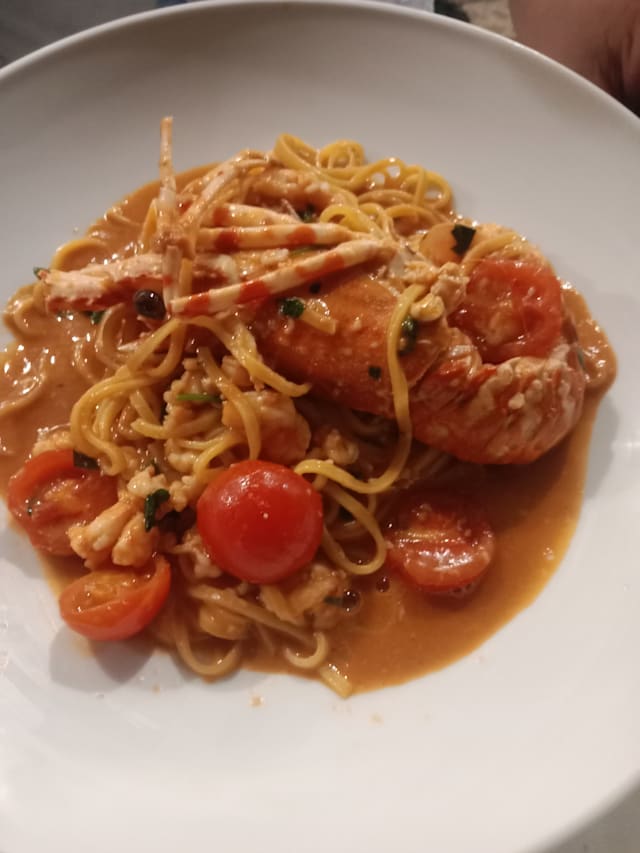 8/10The food at this unpretentious restaurant was delicious. We shared the hot seafood appetizer, which is served in a casserole dish with a delicious crust. Inside were mussels, clams, shrimp and squid. Then we split the spaghetti with lobster - again delicious. Everything was made to order so the pace was slow. Don’t go here if you’re in a hurry! Only one person was seating customers, taking orders, delivering food and cleaning the tables. That said - it was worth the wait!