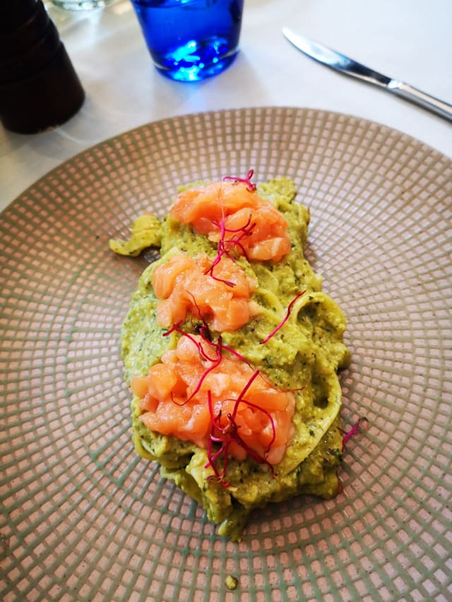 Thank you for taking the time to share your feedback — we truly appreciate it, as it gives us the opportunity to clarify some aspects of the dishes you enjoyed. We would like to assure you that our pistachio tagliatelle are freshly made, and not frozen. As for the salmon tartare, we use high-quality fresh salmon that is blast chilled (a process required by health regulations) to ensure it is safe for raw consumption, without compromising its taste or texture. Regarding the chicken, it is cooked sous-vide (low temperature cooking), which is a slow and delicate process designed to keep it juicy and tender inside. For this reason, it is pre-cooked and vacuum sealed, then finished before serving to achieve a crispy exterior and a flavorful interior. We hope this helps clarify, and we truly value your input as it allows us to communicate more transparently about the care and quality that go into each of our dishes. Warm regards