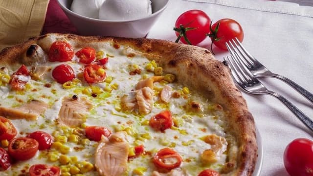 Fiordilatte, gorgonzola, crema di zucca, guanciale, olio evo.