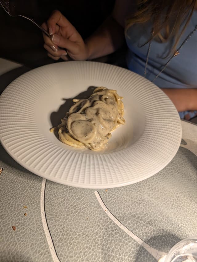 8/10We were there before any other diners, except one table of businessmen. We notified the waiter we were in a hurry as we had a tour of the Borghese museum nearby. Unfortunately the food took a long time..My wife had ordered green tea as soon as we arrived and it was forgotten. I am not usually too fussy about service but for the high price I would have expected better. Views are incredible and there were many waitstaff available. If we were not in a hurry it wouldn't have been an issue as the views are spectacular. The portions were small, more of an art form than full meal which is to be expected in a fine dining style of restaurant. I had the seafood gnocchi which was very good, my daughter the vegetable risotto which I felt was delicious but wasn't her thing.