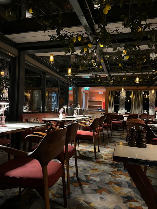 2/10NOT good at all! The restaurant is very beautiful in a 5 star hotel with panoramic view and Nice city light… But all the rest is terrible… I made a reservation for the birthday of a friend with 1 week advance… They called to confirm the reservation one day before… They gave us the worst table in The restaurant with no view next to The payment terminal… We asked if possible to change and they said all tables were full and that didn’t happen till we leave… We were 2 couples well dressed… I’ve traveled all around the world and been in class places and this is just pure FUGAZEE … Arrogant service, food short and nothing nothing special at all… I do better at home for sure! … Also You Will get the prices without TAX on the menu and all those hidden EXTRAS … so in the end, very easy you can get extra 100 eur. in your bill! Just for the photo!