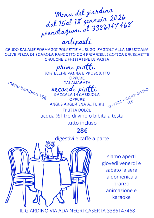 menu dal 15 al 18 gennaio 2026€28 per guest