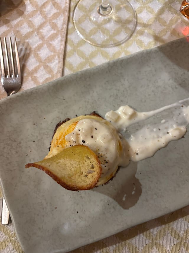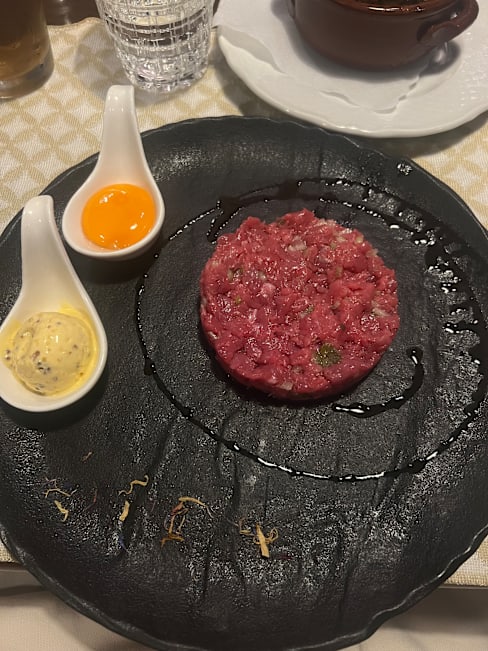 4/10The whole experience was very underwhelming. I have had many Michelin experiences- this was the worst Zero service — staff were untrained seemed uninterested and lacked cordiality - bordering on rude and unpleasant. They seemed angry and frustrated generally. There was no adherence to Michelin standards from the start - it was like a conveyor belt set up where we’re not offered dessert only coffee- we eere not slow! No advice re menu - this was nothing to do with language barrier! The food was just put Food - the chicken liver, saffron gnocchi and cannelloni were acceptable but not as refined in flavour as one would expect however we enjoyed it. The rest of the meal was awful. The beef tartare was chewy and lacked any depth of flavour and the beef dish had was too strong in the flavour of the sauce e and the taste of the meat was lost and was overcooked. The bread was dry and terrible. Vegetables were burnt and there was no finesse or care taken with presentation or service