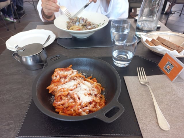 Spaghettone di grano duro 100% italiano pastificio “la molisana”. Vongole lupino del tirreno unite ai datterini rossi di fondi