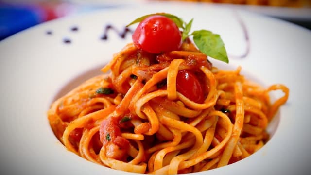 Accompagné de pâtes à la tomates à l'ail et au basilic