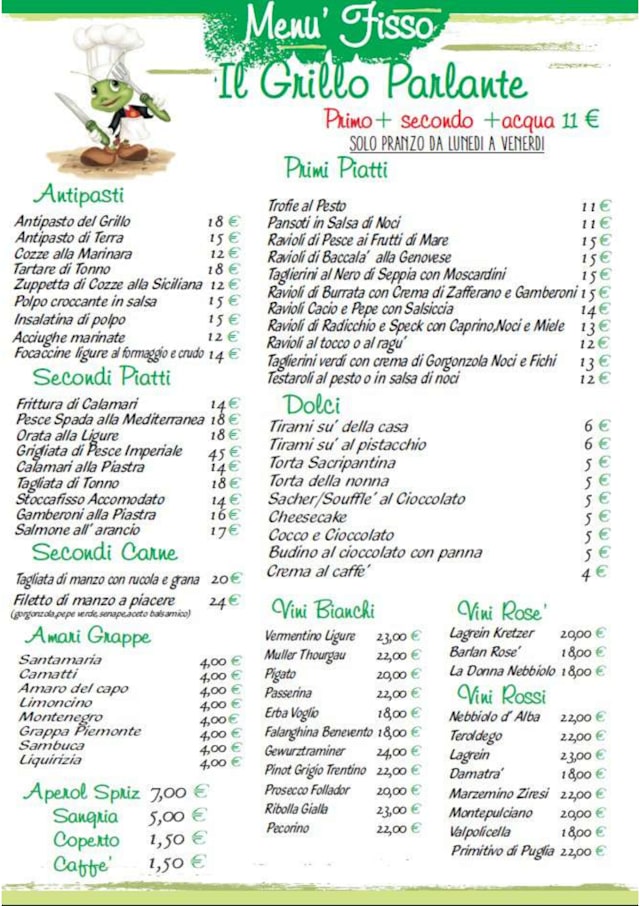 10/10great food and great atmosphere! Grillo Parlante is the Genoa experience through and through! was me pesto, Pansotti, and fish dishes; amsinh service with lots of fun chatting with the waiter; really welcoming vibe and atmosphere! we will be back!