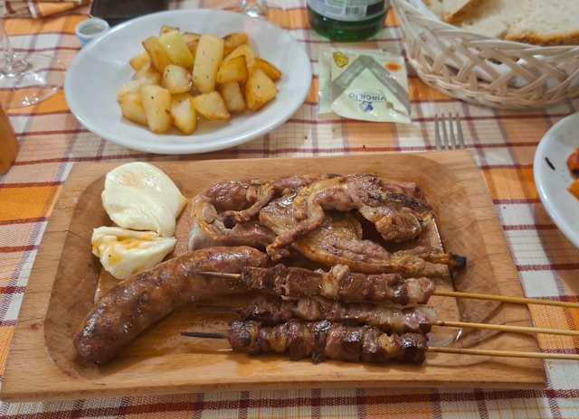 struttura interna in pietra con camino e pozzo. Pasta fatta in casa e carne alla brace.