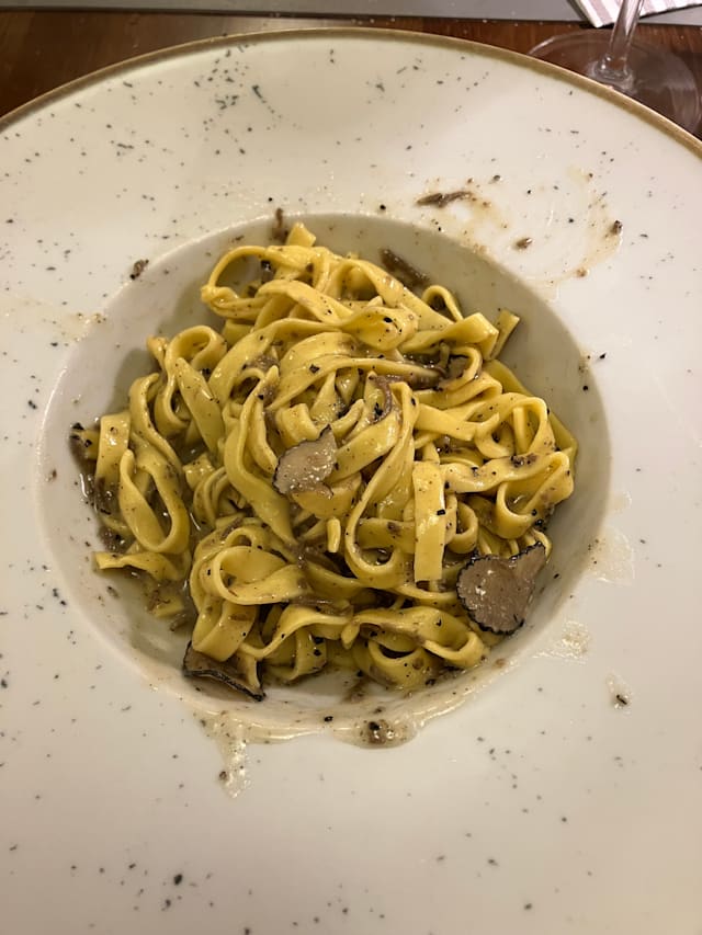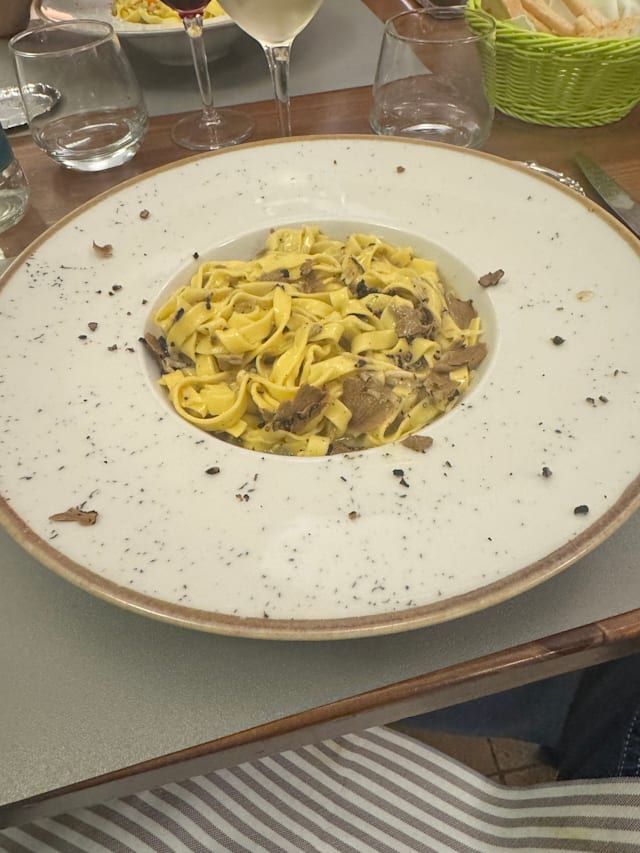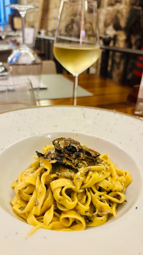9/10The staff working at the Labirinto by far made my experience. The man who served us tried to help me charge my phone and negotiate my French charger with the very old wall plugs. Alas, no success, but my meal was very pleasant. We ordered pasta and two glasses of house white wine as we weren't that hungry. I will say that my tagliatelle with truffle was a bit overpowering in smell and taste. Just too much for my palate, though I ate most of it. My boyfriend enjoyed his umbrichelli all'amatriciana and we mopped up our sauces with bread. We shared a tiramisu with two espresso as it is a travesty to have a latté past a certain time in Orvieto, apparently! They were very good: not bitter like espresso in Ireland. After, we wandered through the Labrinto and it surpassed my expectations. It is so well looked after and well ventilated and the treasures were humbling to see. This restaurant is a must for anyone curious about the Etruscans.