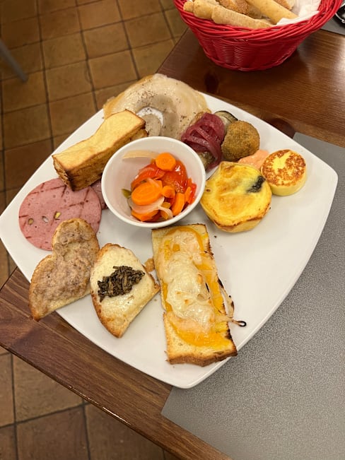 6.5/10The place is nice, and they should have told us about what was found underground when we arrived, and not at the very end, still it was interesting. On the web it said they had vegeterian options, but they did not have even one for main course. The only option for pasta was the tartufo, and it was OK, but not amazing. I had to add salt and pepper a few times, and when I asked to add some parmesan, he said no, no, no. I believe he could have said it doesn't need, but here it is, you decide. We really wanted a salad, and could not believe there was not even one, and the only thing I could choose was a plate with deep fried things, that was OK, but nothing special, and definitely not healthy. The portions were really small, and it was expensive. Not a place I would recommend