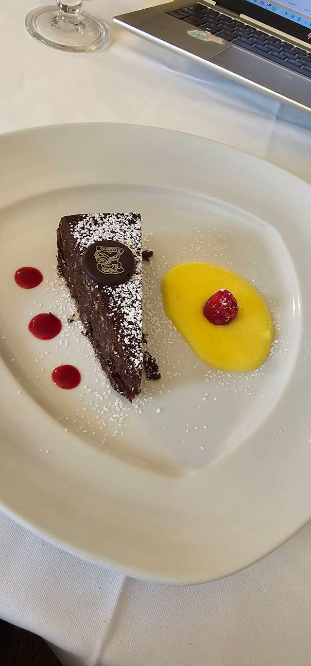 - Tortino di pistacchi con crema all'Aurum