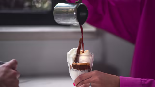 - Gelado de baunilha afogado em espresso quente, com chantilly, biscoito crocante e canela.