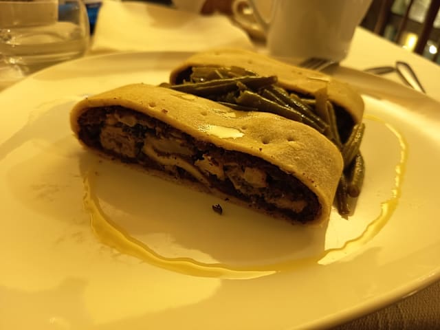- (tris composto da: insalata russa, torta salata alle verdure, patè di cicerchie)