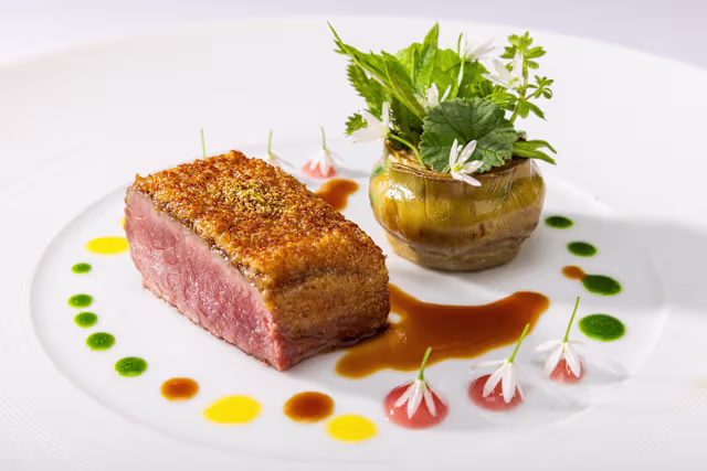 - Controfiletto di vitella fassona di montagna con panure di camomilla e composta di cipolle di tropea