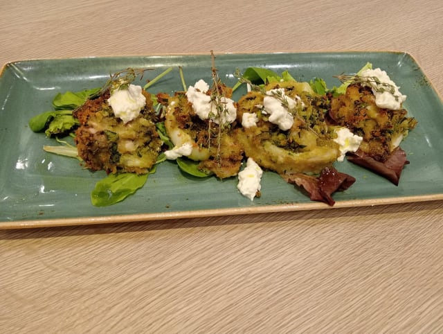 Calzone aperto, misticanza, cipolla di tropea condita e sardoncini marinati