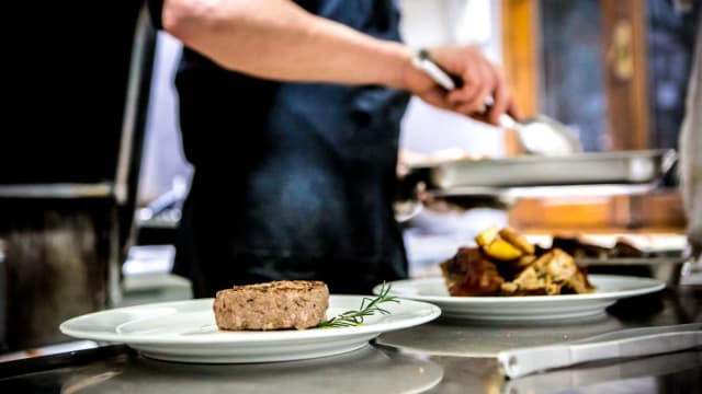 Carne sceltissima della nostra Scottona, condita con sale, pepe, olio, prezzemolo, cipolla, rosso d'uovo. Servita al piatto con impiattamento e abbinamenti stagionali.