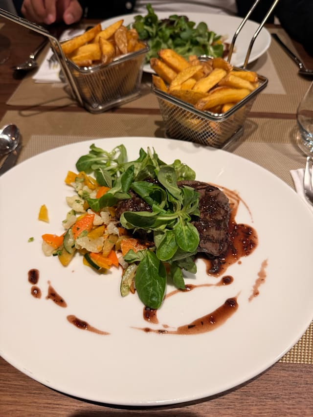 9.5/10It is a very beautiful restaurant, very cozy and enchanting, and the green terrace is a plus. I would highly recommend it for a chill evening. The wine: excellent, the beef steak delicious. The potatoes some of the best I ever had. The service was a bit slow (it was also a busy night) and the deserts we tried could be improved (pavlova and the creme brulee) which were good, but nothing spectacular. The waiters super nice. All in all I would highly recommend giving it a try.