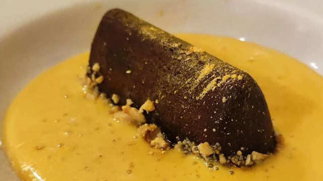 Flan, crema di peperoni rossi & velluto di fontina d'alpeggio DOP