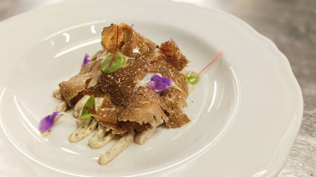 Tajarin "38 tuorli" al ragù bianco di salsiccia