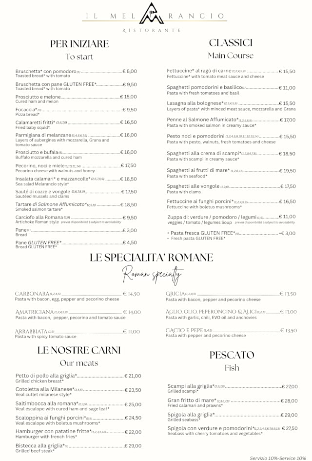 10/10This is the BEST RESTAURANT in ROME!!! We booked the first night as I'm gluten free, so wanted to have somewhere in the diary. Who would have thought that we would then eat there every night!? It was so FANTASTIC! From the moment we saw it, with its twinkly lights on the beautiful Via Vantaggio, we were in love with it. The table was ready & the waiter made us laugh by giving us each a menu but saying that for gluten free, we could have everything on the main menu. Then we met Niko, the manager who was just wonderful, such a kind & joyous gentleman. What a fabulous team at Il Melarancio. The food was INCREDIBLE. I had GF seafood pasta, my son had pizza & my husband had veal cottoletta milanese. The next night, I had sea bass which I then had every night as it was SOo good. My husband also loved the saltimboca. We even went for Sunday lunch too, Niko fitted us in, it was busy everywhere. Best to book. The tuna salad was super delicious. My son says the pizza is the best in Rome! 5*****