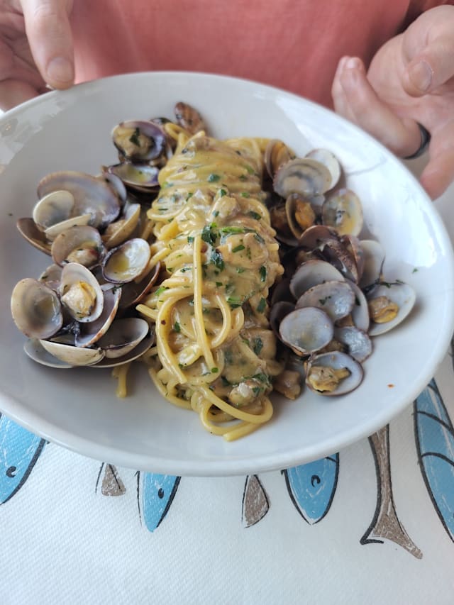 10/10We came all the way from Alaska to have a wonderful seaside meal at Il Monazzero di Teresina! The service stood out the most - I only wish I had learned the woman's name! Fun, lively, gracious and attentive to our every need. We started with delicious light local wine. We shared the meals family-style - sea bass, ravioli carbonara, lobster with homemade fettucine, fresh shrimp and calamari... all just wonderful. We finished with a limoncello. Recommend this beachside eatery with fresh seafood and pasta. Inside or outside service.